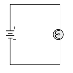 رسم تخطيطي ارسم رسما تخطيطيا لدائرة كهربائية تحتوي على بطارية ومصباح كهربائي وتأكد من أن المصباح الكهربائي سيضيء في هذه الدائرة.
