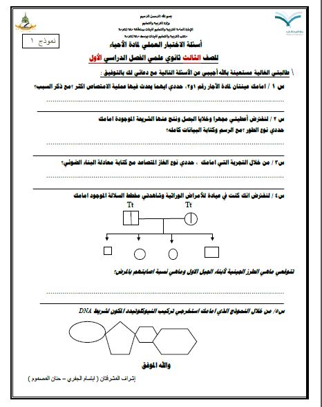 اسئله امتحان احياء عملي ثالث ثانوي ف1 رسم