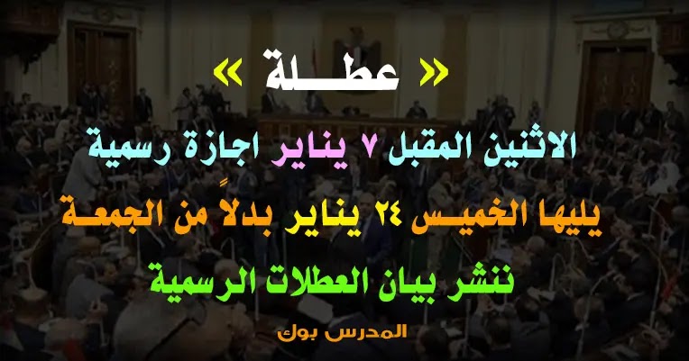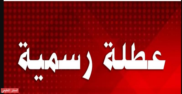 الاثنين اجازة رسمية. اضافة اعلان ونص القرار على يكون يوم الخميس المقبل. نشرت الجريدة الرسمية في عددها الصادر رقم 40 تابع قرار رئيس مجلس الوزراء رقم 1962 لسنة 2020 بإعلان الخميس المقبل إجازة رسمية بمناسبة ذكرى نصر أكتوبر بدلا من الثلاثاء. أعلنت وزارة الخدمة المدنية والتأمينات أن يوم الإثنين القادم إجازة رسمية لكافة موظفي وحدات الخدمة العامة بمناسبة عيد الثورة الوطنية للجمهورية اليمنية 14 اكتوبر وذلك استنادا إلى القانون رقم 2 لسنة 2000م بشأن الإجازات. 2019 01 05t15 35 34z السبت 5 يناير 2019 03 35 م.
