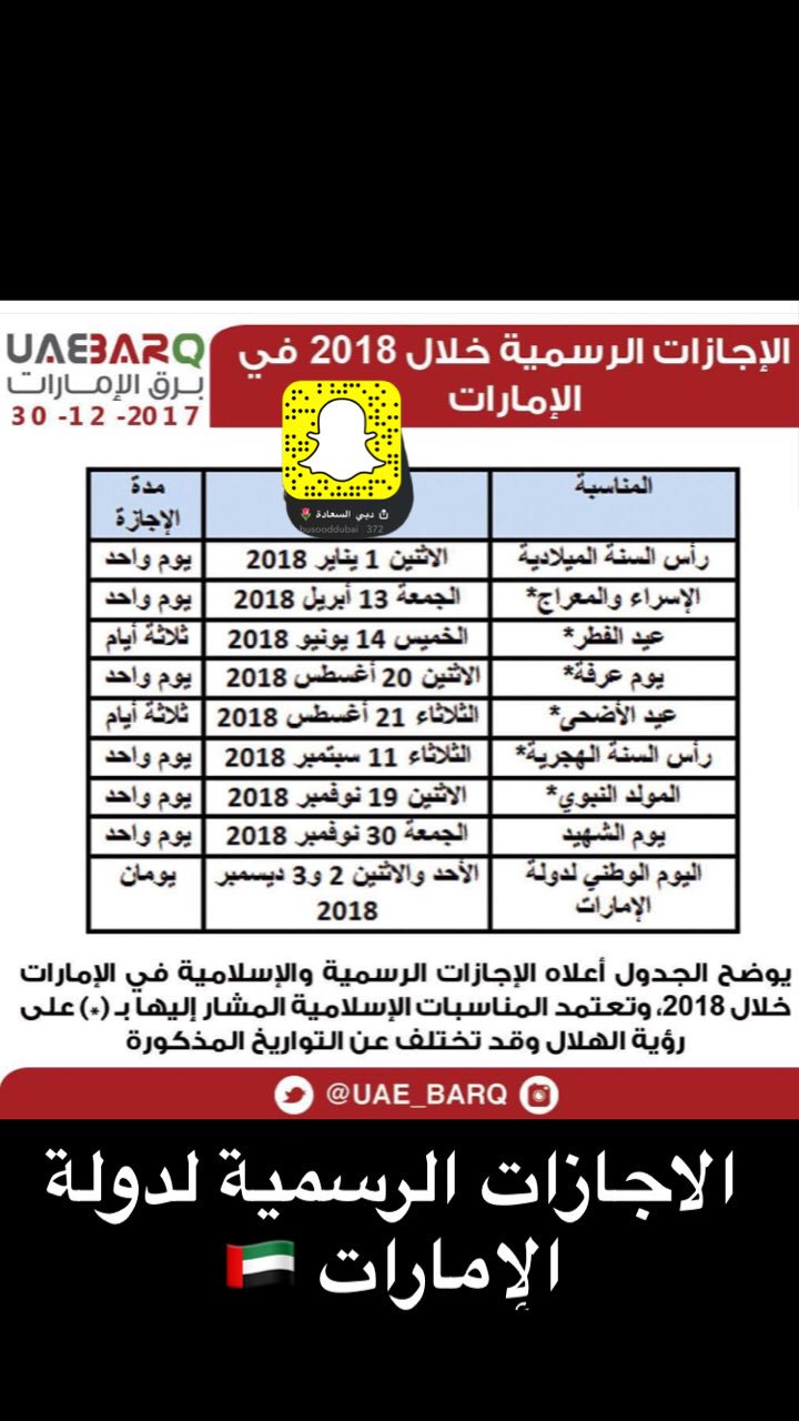 الاجازات الرسمية في الامارات 2017