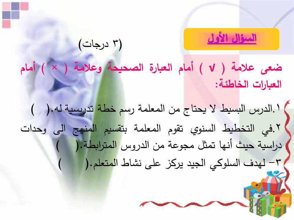 كما تم حساب معامل الصعوبة ومعامل التمييز لكل فقرة من فقرات الاختبار التحصيلى وكانت النتائج كالتالي معاملات الصعوبة لفقرات الاختبار التحصيلى تتراوح قيمتها بين 0 38 0 89 و معاملات التمييز. ١ أى مما يلى لا ي عد من أسباب رفع كفاءة إدارة الصف تقييد تحركات المتعلمين داخل الصف الدراسى ٢ أى مما يلى لا ي عد من الغايات العامة للمنهج معرفة. هو التعبير في صورة رسم بياني عن مقاييس التعلم أو التذكر التي يؤديها المفحوص عندما يقوم بمحاولات عديدة في تجربة التعلم. ب یسقط الحق فیها بانتهاء العام الدراسى.