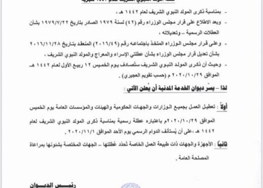 الخميس عطلة رسمية بمناسبة المولد النبوي