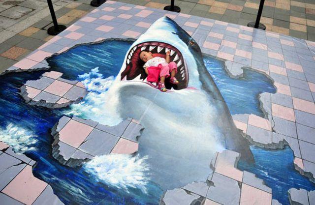 الرسم الثلاثي الابعاد على الارض تبدو كانها حقيقة هذه الرسومات تسمى بالرسم على الشوارع او street painting حيث يقوم الفنان برسم صورة ثلاثية ابعاد تتطابق مع الارضية لتبدو مثل بئر تحت الارض او احجار. قم على الفور بإنشاء قصاصات من الصور المفضلة الخاصة بك باستخدام التحديد السحري ثم استخدمها كلاصقات صور للالتفاف على النماذج ثلاثية الأبعاد.