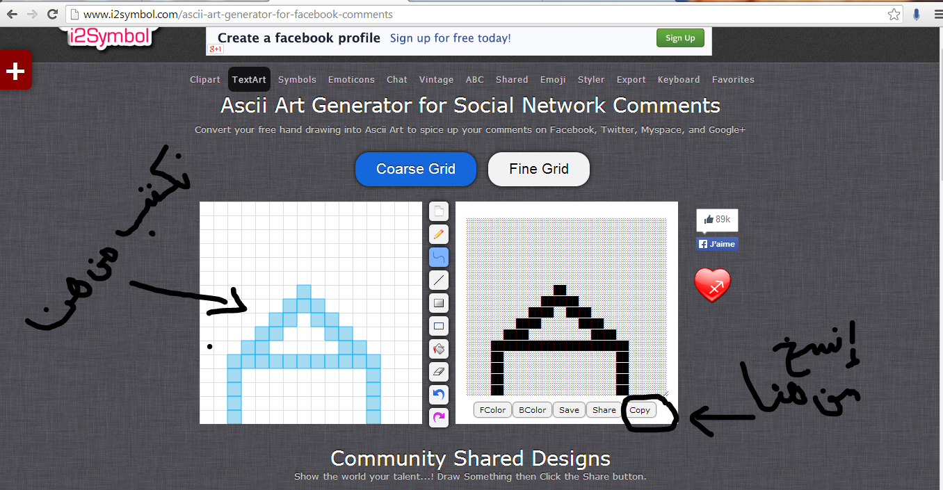 الرسم بالرموز لشات كتابي