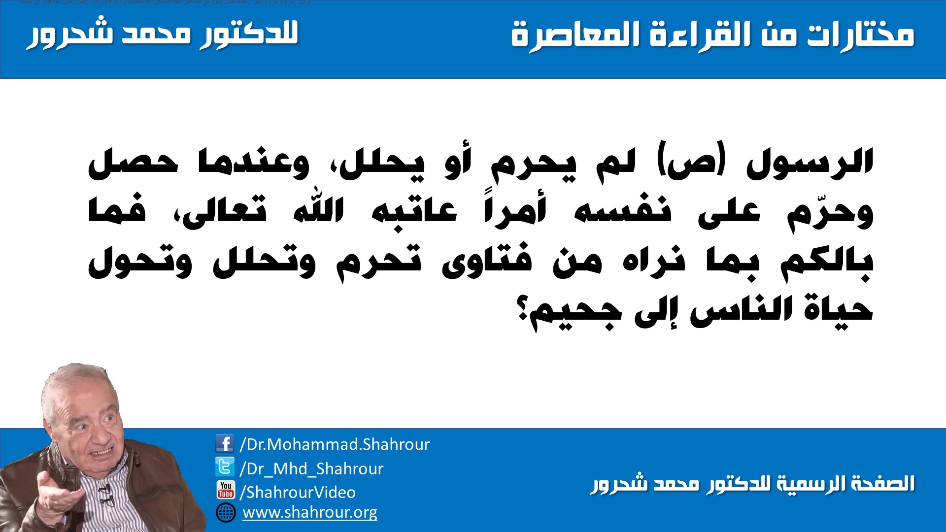 الدكتور محمد شحرور الصفحة الرسمية ١٥ أكتوبر الساعة ٨ ٠٠ ص برنامج حساب المواريث وفق القراءة المعاصرة للدكتور محمد شحرور رحمه. حتى بعد رحيله السجال يتواصل حول إرث الباحث السوري محمد شحرور إذ انقسم المغردون بين مؤيد لآرائه في تجديد. الدكتور محمد شحرور الصفحة الرسمية yesterday at 9 27 am مقال سبق نشره على موقع السوري الجديد بعنوان ظهور داعش رب ضارة نافعة.