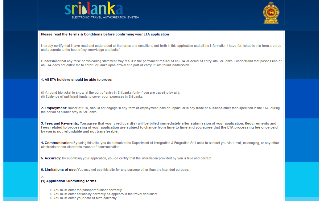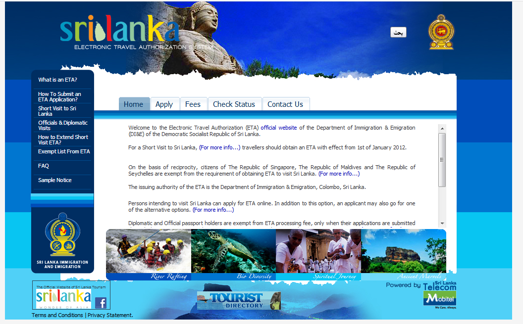 الصفحة الرسمية لتأشيرة سيريلانكا