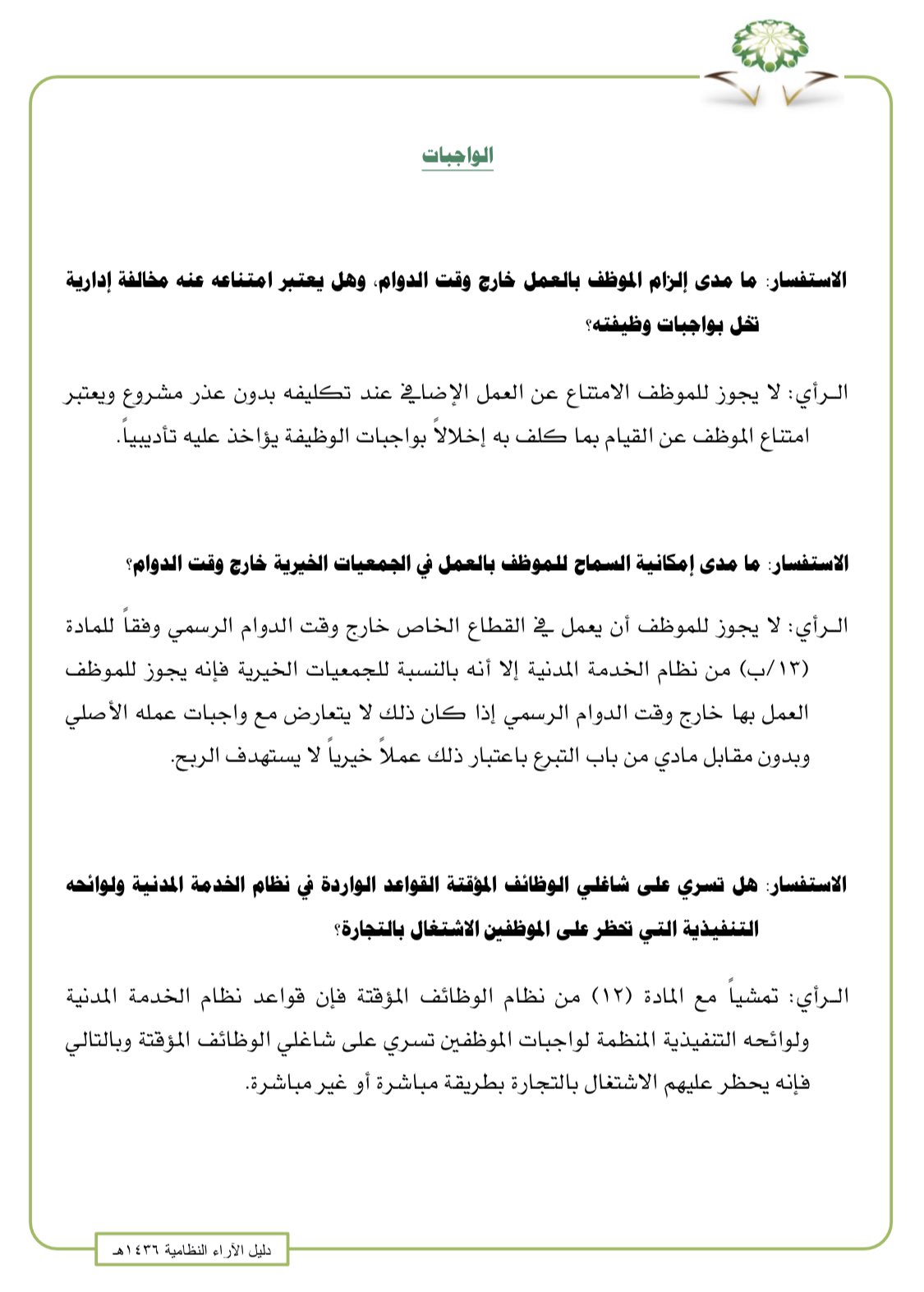العمل خارج اوقات الدوام الرسمي نظام الخدمة المدنية