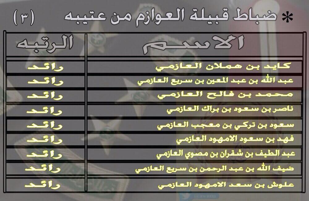 العوازم من عتيبه الرسمي. قبيلة العوازم هي قبيلة هوازنية قيسية مضرية من قبائل شبه الجزيرة العربية تنتشر في الكويت والمملكة العربية السعودية والمنتسب للقبيلة يسمى عازمي والجمع عوازم وعزوة ونخوة قبيلة العوازم هي أولاد عطا عيال عطا أو آلاد عطا. صار لدى ثابت ابناء واجفاد قرر ان يدخل مع قبيله فدخل مع الروقه من عتيبه. العوازم من عتيبه كان العرب منذ قديم الأزل بدو رحالة ينتقلون من مكان إلى مكان آخر بحثا عن الطعام والماء في الصحراء فكان لا يستقرون في مكان فالحياة التي يعيشونها صعبة للغاية فلا غذاء ولا ماء في الد. العوازم من الروقه من عتيبه كتبه الاستاذ راشد بن حمدان الاحيوي طرحت عدة أقوال في نسب قبيلة العوازم من عتيبة وفيما يلي بيانها وبيان القول فيها.