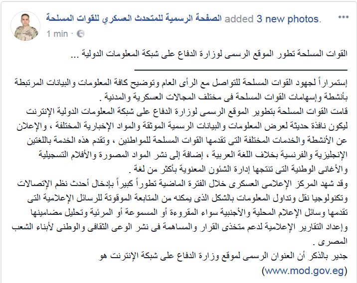 الصفحة الرسمية للمتحدث العسكري للقوات المسلحة added a new photo. القوات المسلحة المصرية وزارة الدفاع. للعام البحثى 2019 2020 وذلك بحضور الفريق محمد فريد رئيس أركان حرب القوات. القوات المسلحة المصرية تحذ ر من صفحات مشبوهة أكدت القوات المسلحة المصرية أن الصفحة الرسمية الخاصة بالمتحدث العسكري هي المصدر الرسمي الوحيد للمعلومات المتعلقة بها.