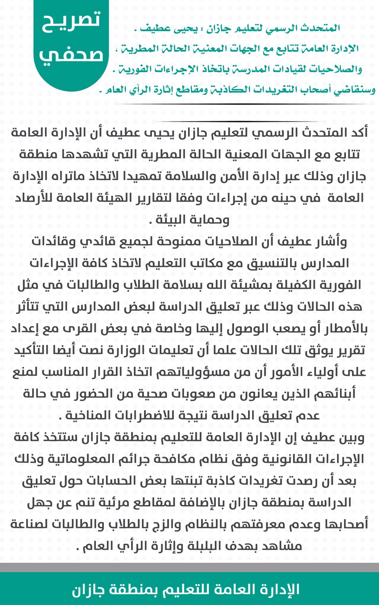 المتحدث الرسمي لتعليم جازان