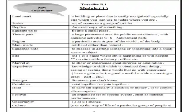 افضل مذكرة شرح واسئلة لمنهج ترافيلر Traveller B 1 Prep 1 Term 1 للصف الاول الاعدادى الترم الاول