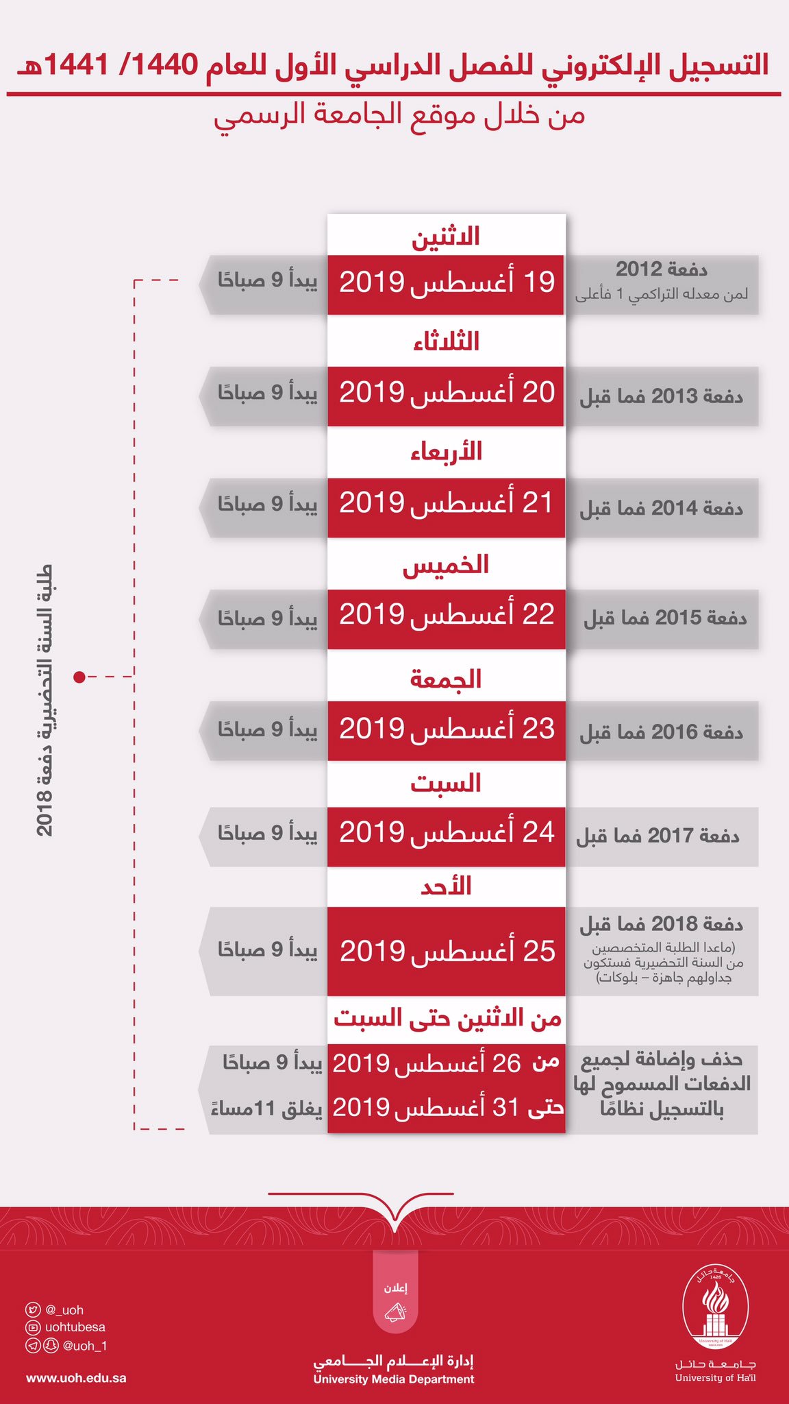 الموقع الرسمي لجامعة حائل. Keen that the wheel of development keep going round in all fields the university has worked on developing its strategic plan especially at the end of its 1st version in late 2018 prompting the current strategic plan to take over with its roots running deep in. جامعة حائل الموقع الرسمي لجامعه حايل والذي يضم بوابة القبول والتسجيل كذلك جامعة حائل الدراسات العليا وعمادة خدمة المجتمع كذلك التقويم الاكاديمي وكافة التخصصات كذلك الدورات في جامعه حائل. عقد مجلس جامعة الدول العربية على مستوى القمة دورة غير عادية في مدينة مكة المكرمة يوم الخميس الموافق 30 مايو أيار 2019م لبحث التداعيات الخطيرة للهجوم الذي قامت به ميليشيات الحوثي الإرهابية المدعومة من إيران على محطتي ضخ.