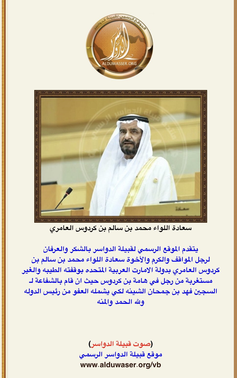 بسم الله الرحمن الرحيم الحمد لله والصلاة والسلام على اشرف الخلق وازكاهم على الاطلاق نبينا محمد وعلى آله وصحبة اجميعن تم بحمد الله تدشين الموقع الرسمي لقبيلة الدواسر قال الله تعالى ي ا أ ي ه ا الن.