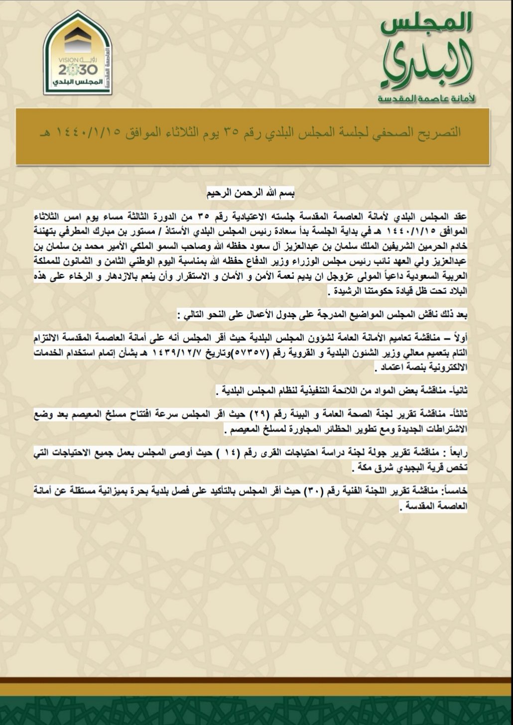 الموقع الرسمي للمجلس القروي امانة العاصمة المقدسة. حي العنبرية طريق أمير المؤمنين عمر بن الخطاب رضى الله عنه مقابل السكة الحديد. الموقع الرسمي للأمانة العامة لشؤون المجالس البلدية وزارة الشؤون البلدية والقروية. الأمين العام لمجلس الوزراء يشيد بدور بعثة منظمة أطباء بلا حدود في العراق. بلدي عنيزة يشكل فريقا لمعالجة العقبات التي تعترض مشاريع البلدية ويشدد على توظيف مواقف مجمع عنيزة 13 03 1435 هـ.