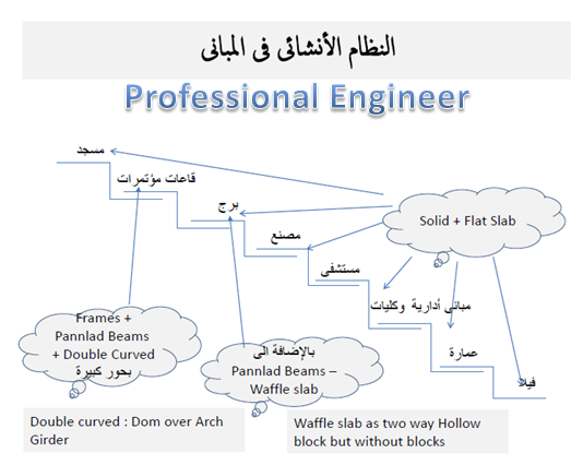 ماهو النظام الانشائي. و بناء على ذلك فإن ارتفاع المباني في هذا النظام لا يزيد عن 5 أدوار ويعتمد ذلك على أحمال المواد البنائية وقوة تحمل التربة. ت عتبر الخطوة الاولى والاهم في التصميم الانشائي هي اختيار النظام الانشائي المناسب والامثل للمنشأة بحيث يضمن اقل تكاليف انشاء ممكنة وافضل اداء للمنشأة تحت ظروف التحميل المختلفة. معينه للحصول على قوة ضغط مناسبة للتصميم ولكن بالمقابل نجد ان الخرسانة ضعيفة في تحمل قوى الشد وبالتالي لا تتحمل اي قوى شد غير محسوبة.