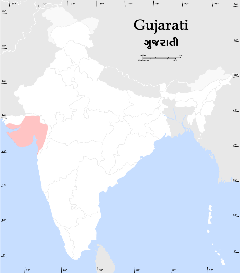 يوجد أكثر من 180 مليون مستخدما لهذه اللغة كلغة أم. اللغات الرسمية في الهند هي جل اللغات التي يحددها دستور الهند كلغات رسمية لحكومة الهند كما هو مكتوب باللغة الهندية في نص ديوناكري وكذلك اللغة الإنجليزية. وتشتق من لغة تسمى الكجراتية القديمة 1100 1500 ب م التي هي اللغة الأم للغواجاراتية الحديثة واللغات الراجستانية. اللغات الرسمية في الهند.