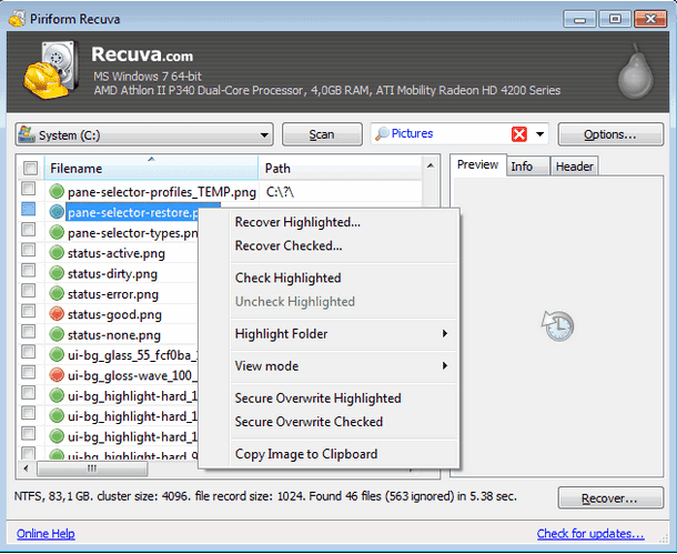 5 30 mb الترخيص. معلومات عن برنامج recuva للكمبيوتر الموقع الرسمي للبرنامج حجم البرنامج.